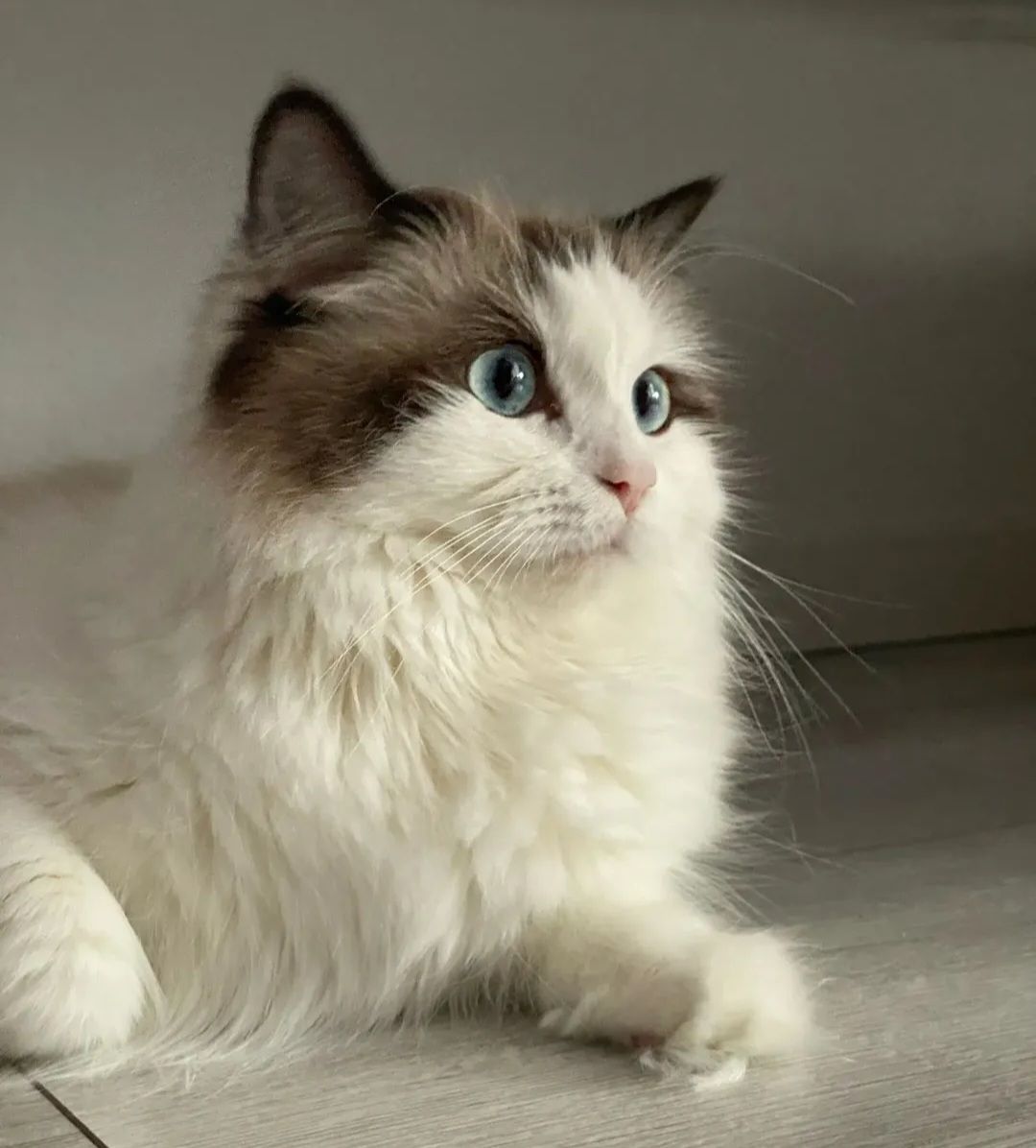 Cinderella ist eine wunderschöne, relativ kleine Ragdoll Dame in der Farbe Seal tortie bicolor spit face.