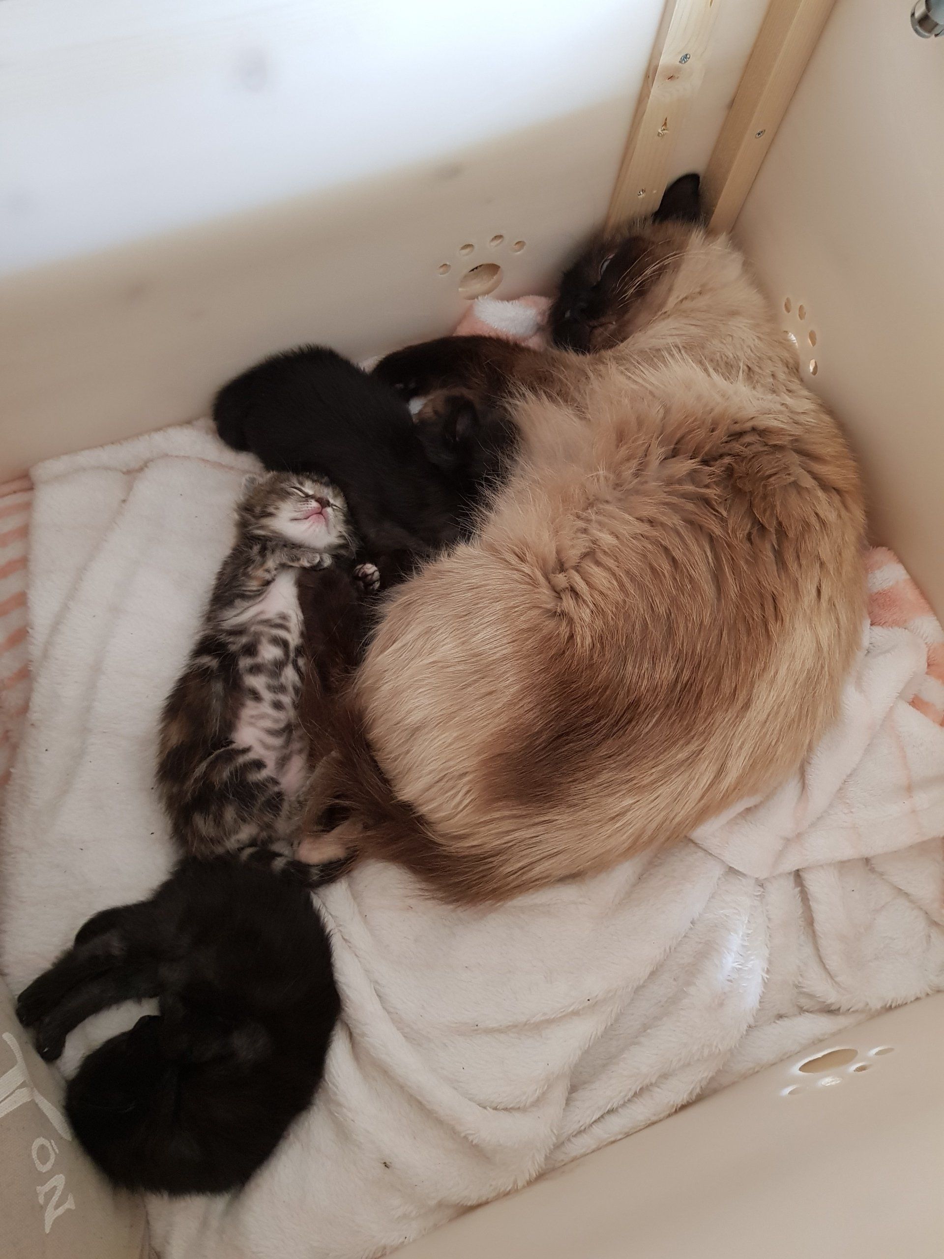 Unsere Kätzin wurde beim Deckkater nicht ordentlich beobachtet und wurde deshalb von deren zweiten Kater, einem Ragdoll BKH Mix, gedeckt.