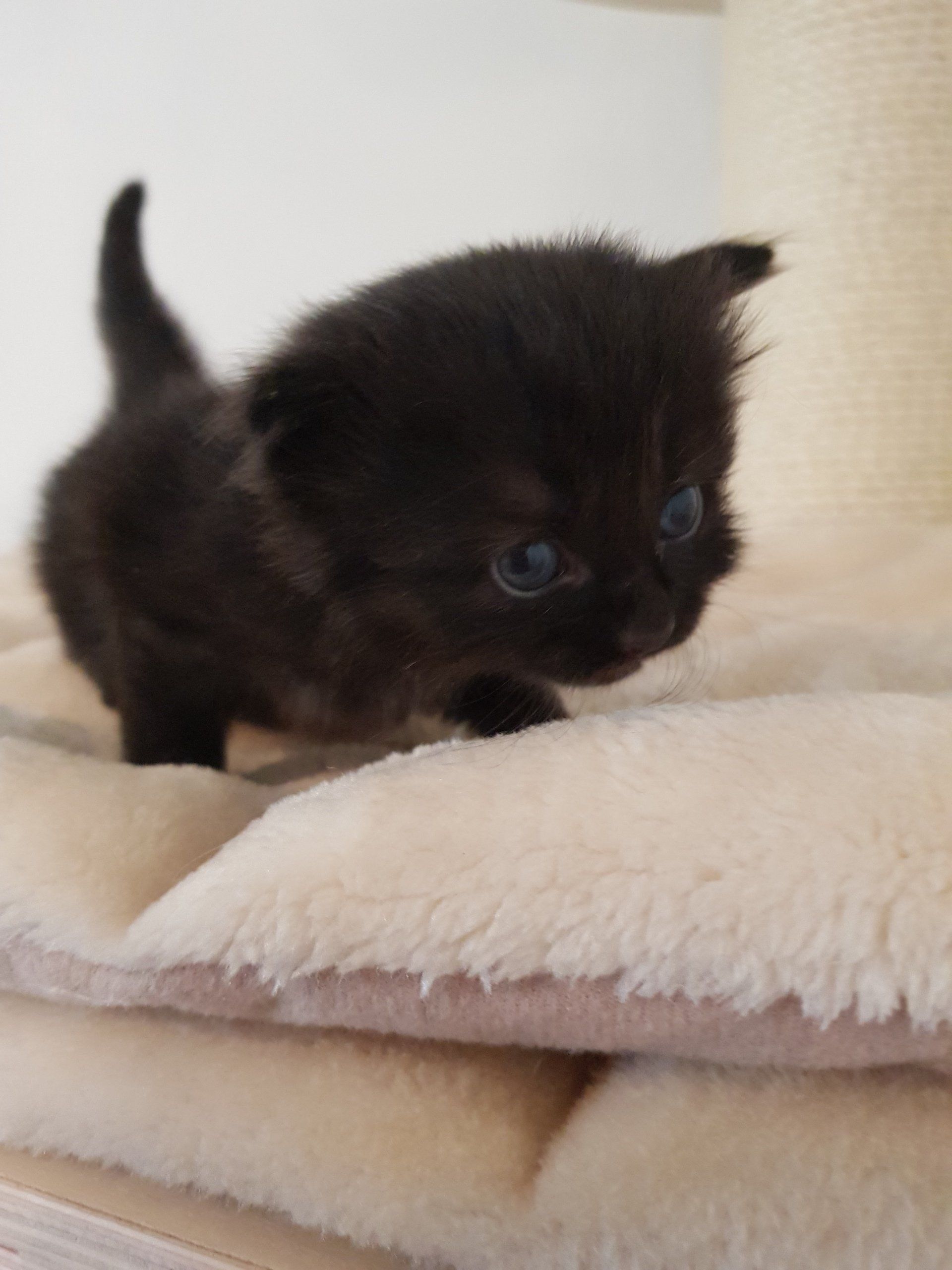 Farbe: schwarz mit weißem Fleck auf der Brust